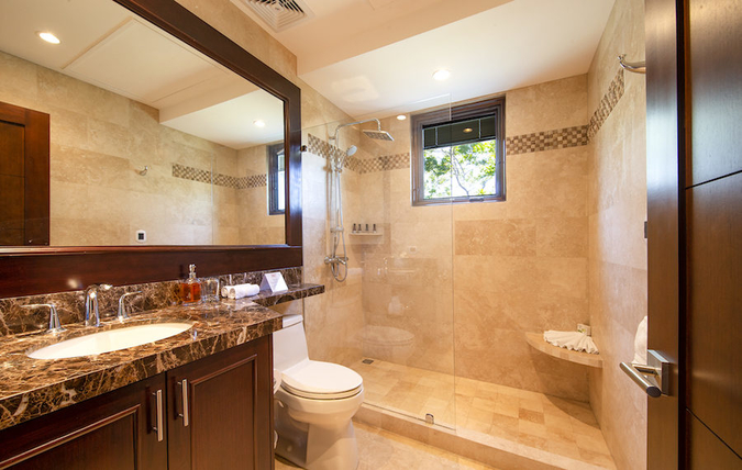 All three penthouse bedrooms showcase breathtaking coastal views through large windows. In addition to stunning views from within, every room also has direct access to a private terrace with fresh coastal breezes and impressive vistas. Each bedroom is spacious with flat screen televisions, closet space and individually controlled A/C units. All three bedrooms also have en-suite bathrooms with marble vanities, walk-in showers and complimentary toiletries. Additionally, the master bedroom features a walk-in closet and a private wrap-around balcony.