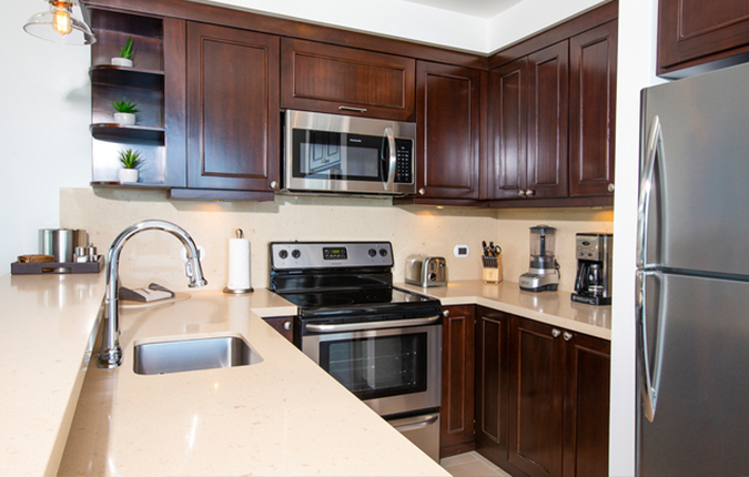 You will feel right at home with the layout of these one bedroom condos for rent in Playa Flamingo, Costa Rica.